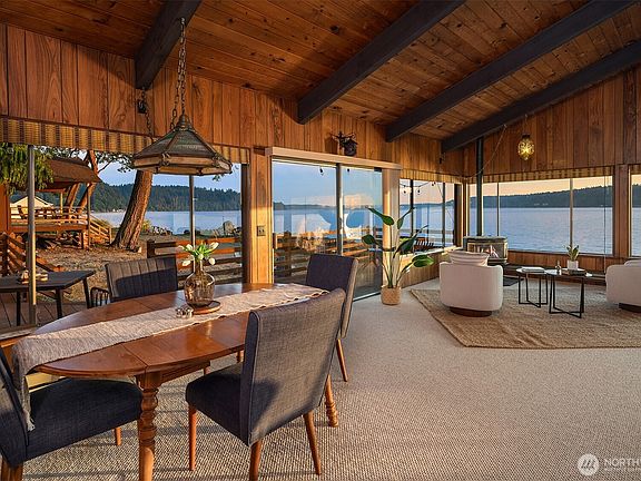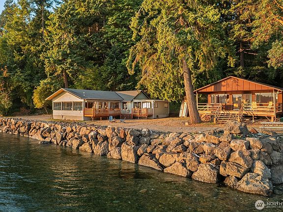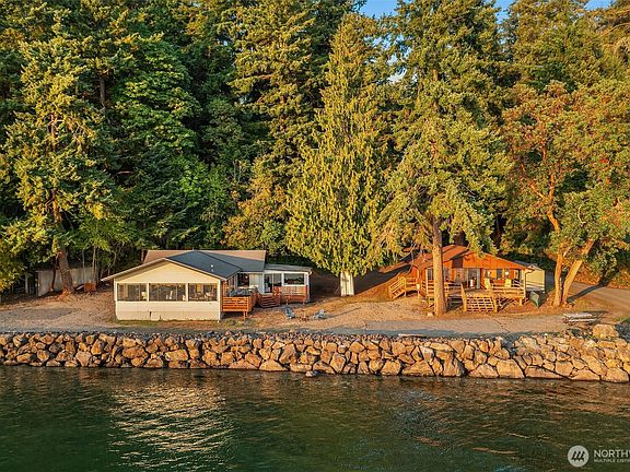 Loved by the same family for three generations, Driftwood Landing is a rare waterfront legacy on the north end of Paradise Cove. Two vintage cabins, on separate parcels, rest on two private acres with 200 feet of shoreline and sweeping southwest views down Colvos Passage—where sunsets are among the best on the island. The main home offers 1,660 sq. ft. with vaulted ceilings, walls of windows, and a new deck, while the 560 sq. ft. second home provides flexible space and a covered deck. Both cabins embrace open floor plans and timeless beach charm. Updated infrastructure includes two new septic systems, a shared well, and Comcast internet. Privacy, history, and unparalleled views combine to make Driftwood Landing a one-of-a-kind offering.