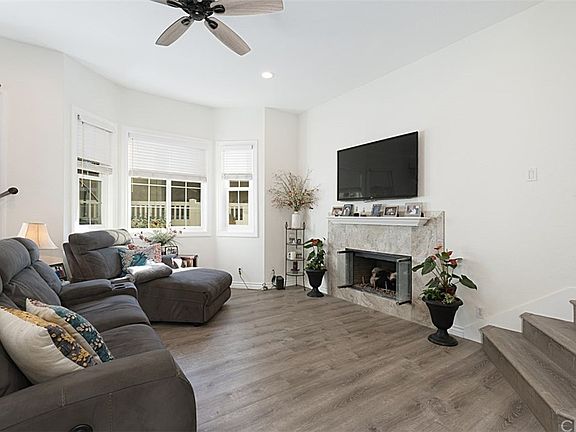 MOVE IN READY Stunning home with OPEN FLOOR PLAN, clean and bright with lots of natural light. UPGRADED kitchen - Spacious GRANITE counter top with eating area, New CABINETS w/PULL OUTS, SOFT CLOSE doors etc, NEW APPLIANCE, High ceiling with RECESSED Light, Ceiling Fan, Cozy refaced fireplace and more. Separate LaundryRoom. New waterproof laminate flooring down stairs. Both Bedrooms have new carpet, ceiling fans, recessed lights and there own private bathrooms. Master bathroom shows well with walk in shower. Delightful patio with new Arbor and wood deck surrounded by plants, gravel and a private easy access gate. All nicely located on expanded greenbelt/park area with a couple benches. Community pool and spa area is close but not too close. This will not last long!