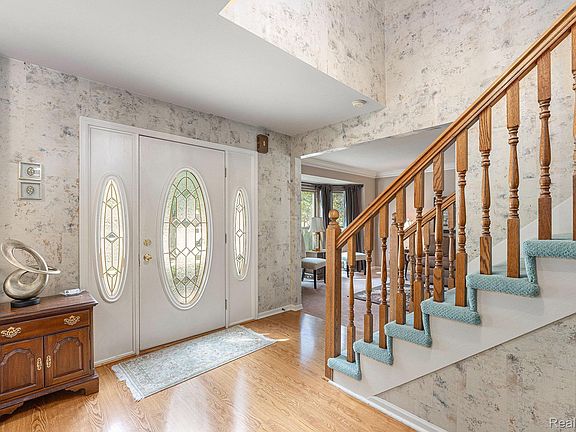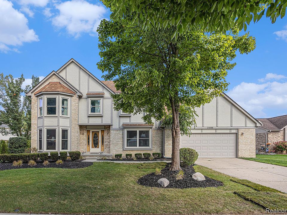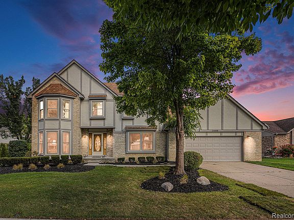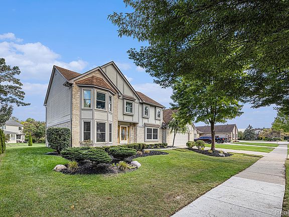 Looking for a home with character? Fall in love with this four bedroom, two and a half bath Colonial home in the heart of Novi! Enjoy the gleaming floors, decorative crown moldings and tasteful colors throughout this home. Formal living and dining rooms have bowed windows and are perfect for entertaining. Lovely kitchen features brand new Frigidaire stainless steel appliances, tumbled tile backsplash and granite counters. Breakfast nook features a built-in desk, enchanting chandelier and delightful glass-front cabinets to display your favorite pieces. Cozy up to the gas fireplace in the family room. Relax and enjoy the sunroom year-round, with laminate floors and a ceiling fan for added comfort. Gorgeous vanity with marble top graces the powder room. Library offers built-in bookcases. First floor laundry with washer and dryer. Upstairs is the primary suite with a large walk-in closet and bath featuring a jetted tub, shower and double sinks. Three nice sized bedrooms and full bath with double sinks complete the second floor. Plenty of room to enjoy in the finished lower level, nicely carpeted and offering tons of storage! Water heater new this year and a back-up sump pump added. Spend your warm days on the brand new, spacious deck and enjoy! Exterior of home was painted in 2025. Some wall decor and furnishings may be negotiable.