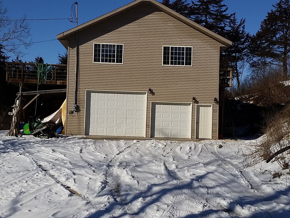 Two story house on lake delhi two bedrooms upstairs full garage 30ftx35ft waterfront views hundred yards from water no stairs their is a easement for the docks and lift