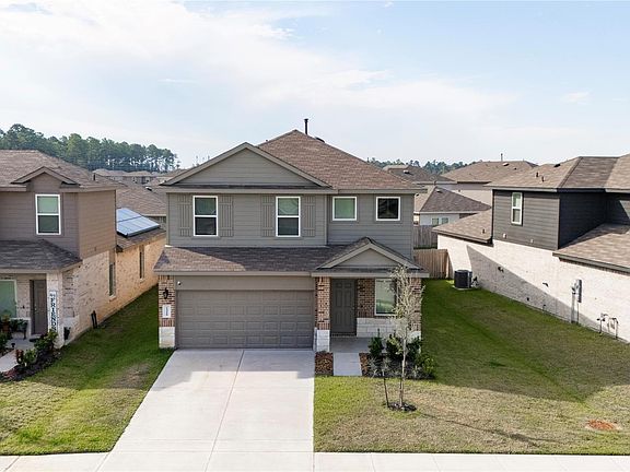 DELIGHTFUL 2023 D.R. HORTON IN BRECKENRIDGE FOREST EAST! Beautiful 5-bedroom home with a fantastic layout designed for modern living! The island kitchen opens seamlessly to the spacious dining area and adjoining living room, perfect for entertaining. A private guest suite with full bath is located downstairs. Upstairs, you’ll find an ENORMOUS primary suite with sitting area, a luxurious bath with large shower, and a HUGE walk-in closet! A versatile gameroom plus three generously sized secondary bedrooms complete the second floor.