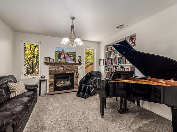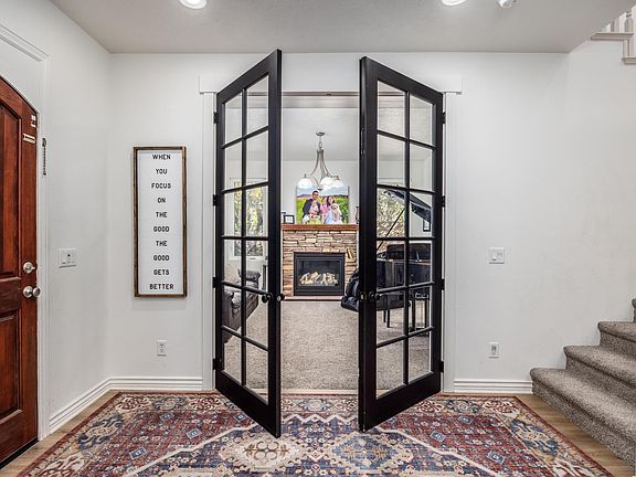 Great home in the heart of Little Valley. No backyard neighbors, minutes walk to splash pad, parks, pickle ball, ball fields and schools. Upstairs has almost 900 ft of deck that offers great views and outdoor privacy. New flooring, two gas fireplaces, covered patios, quartz counters, double ovens, large storage shed out back and awesome location with privacy and space! Two-car garage has been converted to a dance studio, which can be used by an aspiring gymnast, yoga/pilates studio, movie theater, golf simulator or excercise gym! Can easily be changed back to a standard garage by removing floating floor and reinstalling hardware.