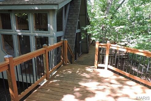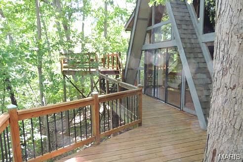 If you are looking for seclusion, this is it! Nestled on over 2.5 acres of mature hardwoods and plenty of dogwoods, this spacious Timberline chalet, offers plenty of privacy, yet easy access to lakes Grendel, Wiederschein and Alpine. Chalet features a spacious great room with hardwood floors and wood burning fireplace, ML bedroom suite, 4 season room, additional bedroom bath and open loft up. The outdoor deck has been expanded, allowing for an elevated tier, great spot for morning coffee and a perfect perch for watching the multitude of wildlife saunter by. Chalet is on sewer, (W/D included) hard surface driveway allows for easy in and out. Suitable for Bed/Brk