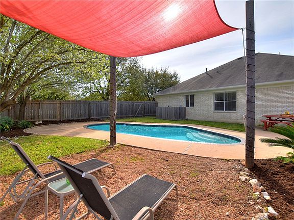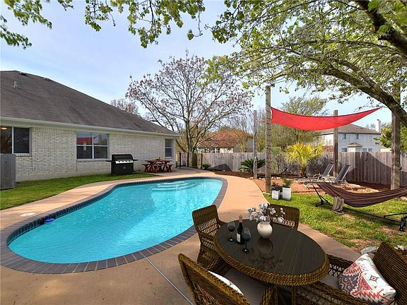 Rare Single Story Home with a Pool in the desirable Anderson Mill West neighborhood in Cedar Park. Located on a quiet cul-de-sac with a full privacy fence and two ample yards, the property backs to open green space with no neighbors behind the house. Kitchen opens up to breakfast nook and living room, with Master adjacent. Front of the house has two bedrooms- perfect for guest room/study options. Formal dining area opens to the living room and could be used for multiple purposes. New kitchen appliances, HVAC and water heater, Nest thermostat and smoke detectors, Ring video doorbell and outfitted with 240V connection for vehicle charger. Fresh and modern interior paint. Walk to Desirable LISD Elementary, Middle School and High School. This charming home is ready for your move-in!