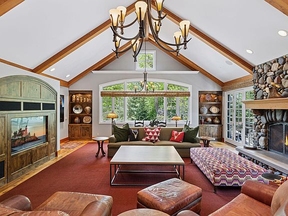 Nestled on a private 1.58-acre wooded lot, this custom home offers a seamless blend of modern luxury and natural tranquility. A tree-lined drive leads to beautifully landscaped grounds with a true resort-like feel. Inside, vaulted ceilings, exposed wood beams, and expansive windows showcase serene views. The main level features a gourmet kitchen with high-end appliances, multiple formal and informal living/dining areas, and access to the spacious main level patio & balcony. Refinished hardwood floors, custom cabinetry & woodwork throughout. The main-level primary suite includes a fireplace sitting area, dual walk-in closets, soaking tub, walk-in shower, and separate water closets. Main level laundry adds convenience. Walkout lower level offers 3 en-suite bedrooms, a large family/amusement room, and a climate-controlled wine cellar. The lower level suite has been fully remodeled with heated floors, a double shower, soaking tub, custom closet, and in-room laundry. Lower level also has a large unfinished area perfect for storage, fitness room or a home theater. Heated 3-stall garage with epoxy floors and dog washing station. Outdoor living includes a stone patio, fire pit, putting green, play area, and outdoor shower. Just minutes to downtown Wayzata, parks, trails, and highways—this is a rare, private retreat in a prime location.