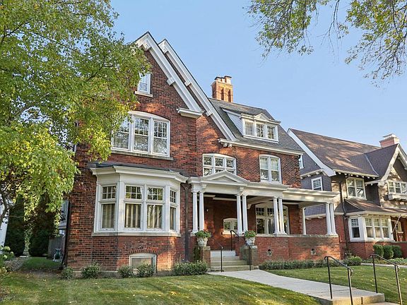 Timeless 1905 Tudor Revival combining historic craftsmanship with grand, light-filled living spaces. Stunning millwork, original fireplaces, leaded-glass windows and coffered ceilings showcase remarkable preservation throughout. The main level offers elegant formal rooms, a welcoming family room, and a spacious kitchen with abundant storage. Upstairs, generously scaled rooms continue the home's warm character, with additional flexible spaces on the third floor. Enjoy outdoor living on the gracious front porch and a private backyard. Located in the coveted Water Tower District, close to the lakefront, parks, and beloved North and Downer Avenue shops and restaurants.
