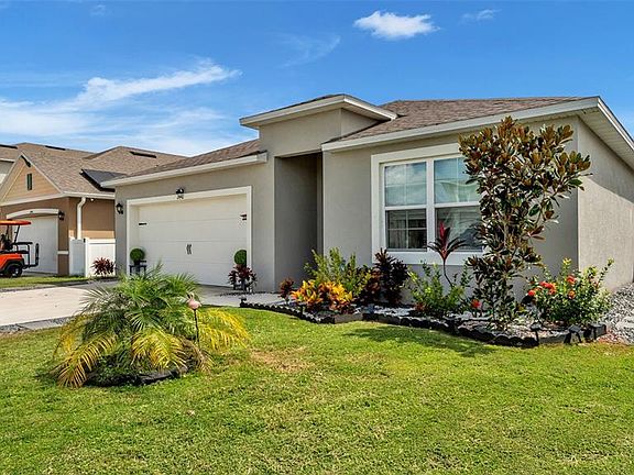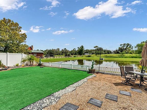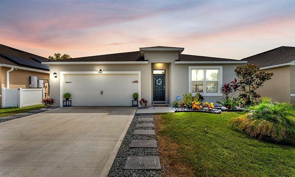 Welcome to 2442 Taloncrest Ct, located in the desirable Eagle Hammock community of Eagle Lake, FL! Built in 2023, this beautifully maintained 4-bedroom, 2-bathroom home offers modern comfort and style. The open-concept kitchen features stainless steel appliances, an island, ample cabinetry, and generous counter space — perfect for both everyday living and entertaining. Enjoy the spacious primary suite complete with a walk-in closet and an ensuite bathroom featuring a sleek walk-in shower. Additional highlights include a separate laundry room, and a fully fenced backyard with sliding doors leading to a covered patio — where you can relax and take in waterfront views of the pond. All outdoor furniture is included with the sale! Conveniently located just minutes from Lake McLeod, shopping, dining, and more. This move-in ready home combines modern finishes, peaceful surroundings, and unbeatable value.