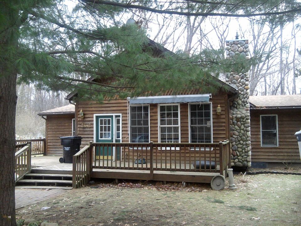 This lovely home is set on 1.04 Acres surrounded by woods. Large Pole Building with electric and cement floor-A man's dream!! 16'Lein Tool on side of pole building(steel wrapped.) Great for storage. Asphalt drive and parking area. Kitchen has cathedral ceiling, new cabinets and ceramic floor. Living room has decorative fireplace and cathedral ceiling. NCB 175 Outdoor Wood burner does not stay. Portable Backup Wired Generator. Exterior of home is wood. Stained in 2014. Master Bath just remodeled. Easement is shared with homes on each side of property. New well in March 2015.
