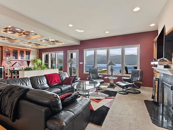 Rare opportunity! North shore waterfront property on Liberty Lake with Lawn, sandy beach, and a view of the entire lake. Two story, 4 beds, 3.5 baths, two primary bedrooms, his/her walk-in closets and sinks, laundry up or down, sunken living area with gas f/p, built-in bookcases, elegant informal dining, granite in kitchen w/double ovens, built-ins, gas stove top, appliances stay, walk-in pantry, even a separate main floor office. Large windows looking out over the lake both up and down. Master suite up has attached sitting area with 3-sided glass f/p & TV access. 3-car garage, guest parking. Access to outdoor patio w/private access to the beach. The sea wall has lights for beach use when darkness sets in. Property is on a dead-end street offering privacy. Front row seats for 4th of July fireworks; golf car ride to 3 golf courses, the Farmer's Market, and annual LL city garage sale. One bed up non-conforming. Boat dock is co-owned w/neighbor. There is a non-recorded dock agreement. Original owners.