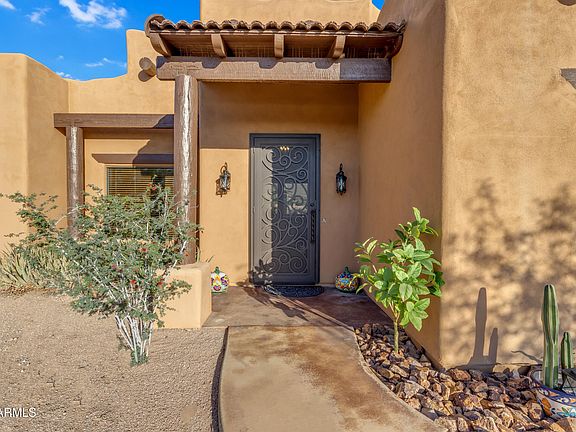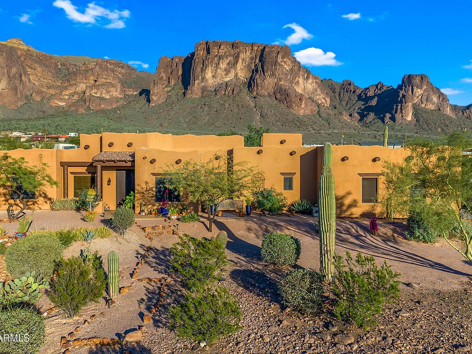 Experience Arizona Living at its Finest! Custom Territorial Home with Mesmerizing Panoramic views of the Superstition Mountains. From the moment you walk in, you will be stunned by this gorgeous home with new custom security door, 12' ceilings, real wood beams and large picture windows. The enormous great room is the perfect spot to gather with family & friends to enjoy the captivating views. The well appointed kitchen features custom Alder cabinets, bronze fixtures, vibrant granite countertops & SS appliances. The interior boasts a warm color pallet with accent walls of both wall paper & new paint. The split floorplan, plus den/office is sure to impress even the most discerning buyers with solid alder doors, new tile in living areas and new carpet in the primary bedroom. Slip out back to enjoy your favorite beverage on a private patio with breathtaking views by day & city light views by night. The well appointed 3 car garage and RV parking is a bonus for this beautiful home.