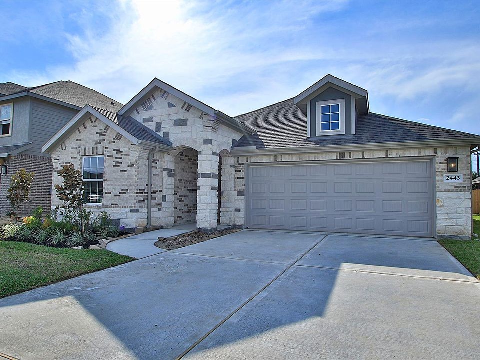 Experience coastal charm just minutes from the water in Ellis Cove - a peaceful community in Seabrook, TX! Enjoy easy access to Kemah Boardwalk, Galveston, Brummerhop Park & everyday conveniences. This STUNNING new construction Fiji plan offers 3 bedrooms, 2 baths, a flex or formal dining space & a 2-car garage. With its beautiful stone and brick elevation, this home welcomes you with timeless curb appeal. Inside, the open layout is perfect for entertaining, featuring a bright family room and a kitchen with stainless steel appliances, bright white cabinetry, and sleek omega stone countertops. Luxury laminate flooring flows throughout the main areas, with durable tile in all wet zones. You will love the spacious owner’s suite with dual vanities, a soaking tub, separate shower & a large walk-in closet. Step outside to a covered patio overlooking your private backyard with no back neighbors, full sod & a sprinkler system. Home is under construction and will be complete August 2025!