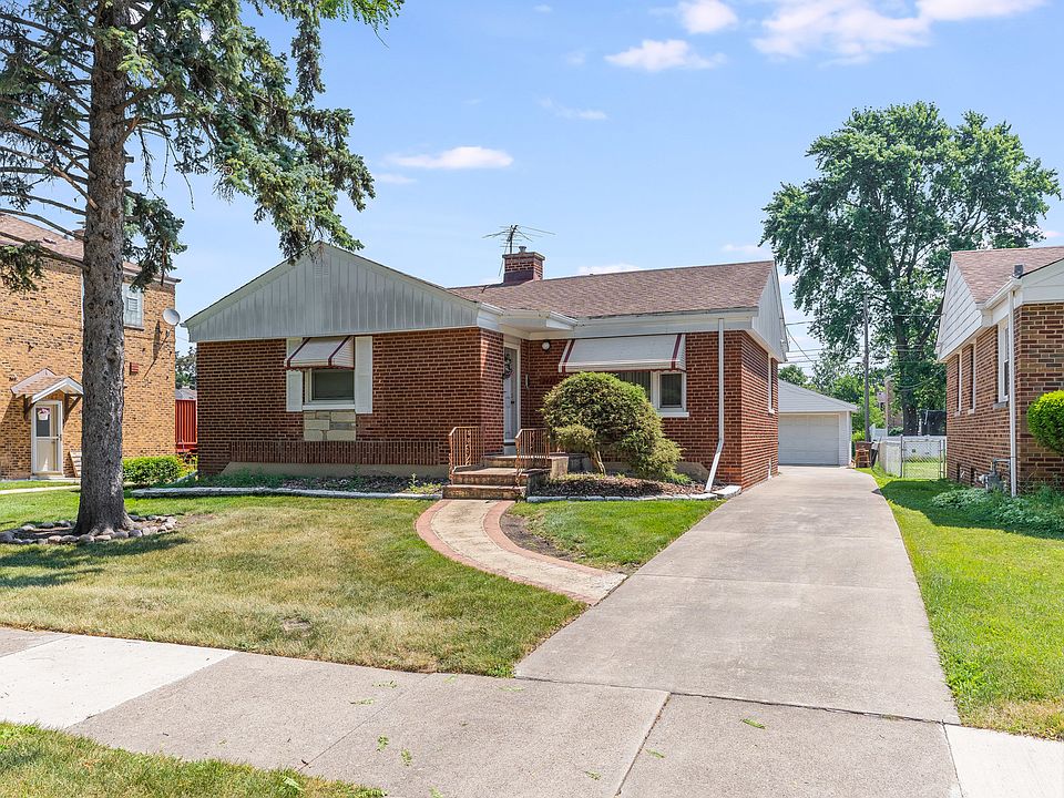 North Riverside 2 bedroom, 1 bath brick bungalow is on the market for the 1st time in generations. Beautiful home has a side drive that leads to a detached 2-car garage along with the yard having a wood deck off the back of the home. Traditional 1st floor layout with formal living room, dining room, kitchen, 2 bedrooms and 1 bathroom. The kitchen has 32" oak cabinets & a tiled backsplash (consider expanding the kitchen by knocking out the non-load bearing wall between the kitchen and dining room). Main level has hardwood flooring under the carpets. Both bedrooms have ceiling fans and good closet space. Finished basement has family room, laundry area & bonus room (poss 3rd bedroom). Newer furnace, HWT (2020) and windows have been replaced including glassblocks in the basement. Newer backup sump pump too!