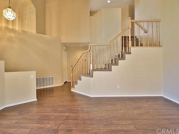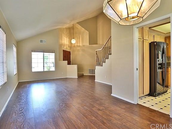 Welcome home! This is a spacious and comfortable 4 bed/3bth, 2007 sq ft home centrally located in the 2nd safest city in the US and close to award-winning schools, shopping, services and major transportation! 1 bedroom and full bath downstairs! Amenities include: marble tiled entry, laminate wood floors throughout downstairs and ceramic tile flooring in kitchens and bathrooms; soaring vaulted ceilings in the step down living room and formal dining area; enjoy this open kitchen w granite countertops, stainless steel sink/appliances and breakfast nook bathed in morning light from surrounding windows; the kitchen opens to the family room w a cozy fireplace and glass sliding doors that lead to the covered patio and landscaped, oversized rear yard; vaulted ceilings in the large master bedroom overlooking the rear yard; separate tub/shower in the master bath w dual sinks and walk-in closet! Ceiling fans throughout w 2" blinds on most windows & mini-blinds on the rest of the windows. 3 car garage perfect for multiple vehicles or for additional storage and/or workspace! This home is located on a quiet street & features an inviting, landscaped front yard. Enjoy summer afternoons in your shaded and private retreat in the back yard! Low taxes! See this home today!