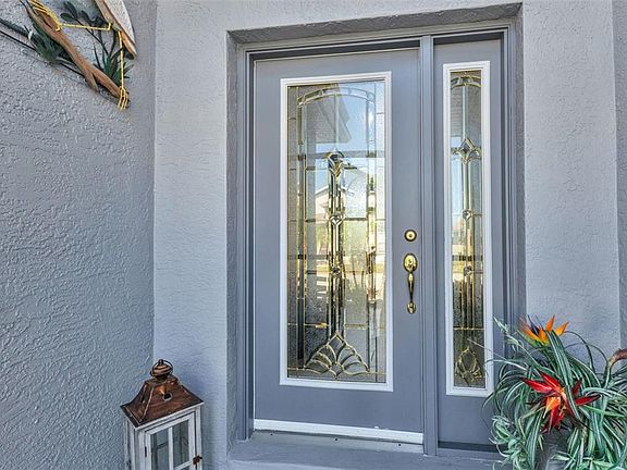 Tremendous Craftsmanship in this Ashton Floorplan in the gated golf course/active resort of highly desirable Kings Gate, a 55+ community that is NOT in a flood zone and DOES NOT require flood insurance. Gorgeous curb appeal from the outside - step inside and you'll be amazed at the stone work in the foyer and around the fireplace/TV wall to go along with most doors and windows being framed for that extra attention to detail. This house receives tons of natural daylight and features a 2022 Roof and 2021 AC to go along with accordion shutters. Large living room interacts nicely with lanai - dining room and kitchen. Kitchen features an island with an additional sink/disposal and plenty of counter and cabinet space. Large master is to back right of this home with guest to the front right providing plenty of privacy for both you and your guests. Den features pocket doors allowing room to be used as a 3rd bedroom, private office, 2nd TV room or craft room - whatever fits your lifestyle. Lanai and paver patio provide additional locations for relaxation or entertaining and offers great view of 2nd hole/pond. And if you haven't been to Kings Gate before - you're going to love the options for activity (Olympic size heated swimming pool and spa, tennis courts, pickle ball, lawn bowling, shuffle board, bocce, horseshoes, gym, billiards, library, euchre, bingo, bridge, Texas hold em, poker, mahjong and more). The onsite AND NEWLY REMODELED Lions Den restaurant and bar is super convenient and also offers Tuesday night Karaoke and monthly trivia contests. Many residents love the fact that they are just a golf cart ride away from the shopping plaza that provides you access to grocery store (ALDI), drug store, bank, restaurants and shopping. Want to explore outside of Kings Gate – you are minutes away from the restaurants and shops of downtown Punta Gorda and Fisherman's village. And if you want to explore more of Florida's fun spots you’re near I75 to quickly head north or south. An AWESOME home with custom touches to provide that WOW from your friends/family with a ton of natural light and golf course/pond view in a PREMIER gated community needs to be on your list. Call today for a private showing and a golf cart tour of the community/amenities.