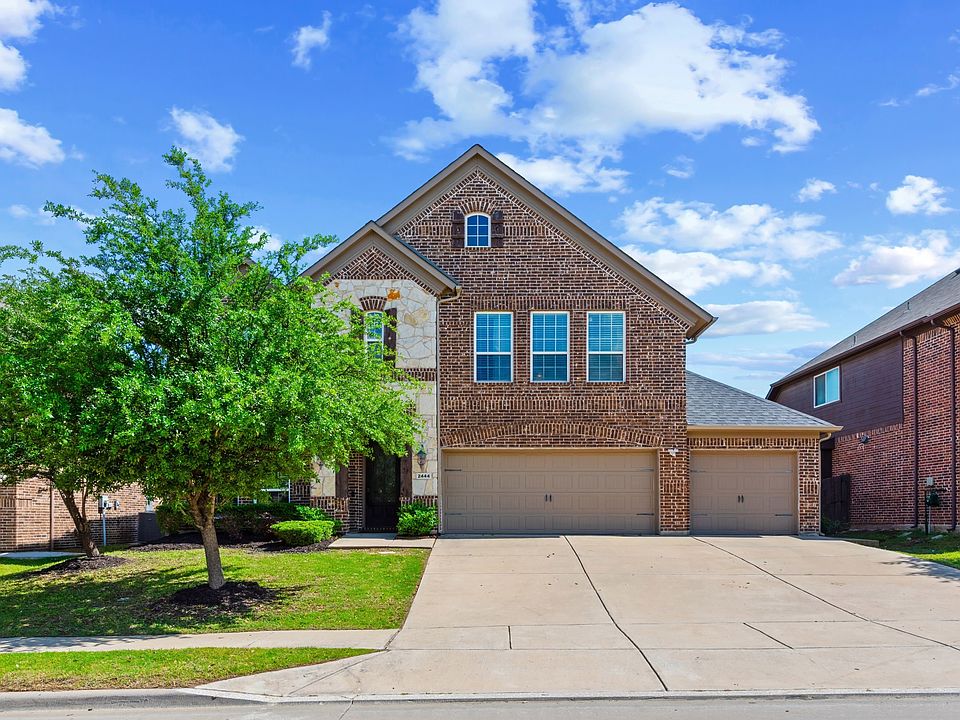 You will love this beautiful North facing 5 bedroom, 3 full bath home, with a 3 car garage, located in coveted Frisco ISD. This home is built for todays family lifestyle, with a bedroom & full bathroom located downstairs for your guests or a quiet office. The dining & breakfast room are right off of the kitchen for those family gatherings and meals. The kitchen features granite countertops, a gas range, walk-in pantry, built in microwave, a breakfast bar, double oven, an island & SS appliances. A large living room is open to the kitchen and has a fireplace for all of your entertaining of family and friends. The huge primary suite and bathroom feel resort style to help you unwind after a long day. Completing the home upstairs has 3 bedrooms, a full bath, a game room for the kids to enjoy & a media room for movie nights. The media room projector & screen will stay with the home.