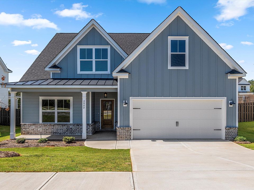 The Jefferson 8 Plan by Oconee Capital. Fantastic and functional floorplan for your family. Beautiful farmhouse features and great curb appeal. This 5 bedroom 4 bathroom is sure to please. Enter into the foyer with tray ceiling. Mud room/drop zone and laundry room as you enter from the 2 car garage. Open floor plan with kitchen and breakfast room opening to the great room with fireplace. Kitchen has granite countertops, tile backsplash, range with smooth top and built in oven and microwave, dishwasher. Large island with sink. Formal dining room with coffered ceiling. Owner's suite on the main level with vaulted ceiling. Owner's bath has separate tub and full tile shower with frameless door. Double vanities with granite, ceramic tile floors, toilet closet and Closet that enters into the laundry room. Guest bedroom and full bath with tile floors and granite countertops on main floor as well. Upstairs you'll find 2 additional bedrooms and a full hallway bath with double vanities and granite countertops and ceramic tile floors. 1 bedroom has a private bath with granite and tile floors as well. A spacious room upstairs, could be used as a bedroom. Covered front and back porches - Back porch has an outdoor fireplace for entertaining, sprinkler system front and back. 30 year arch. shingles. Note: Photos are of a like home and not identical to this home. Room sizes are approx. - if important please verify. If schools are important, please verify with county.
