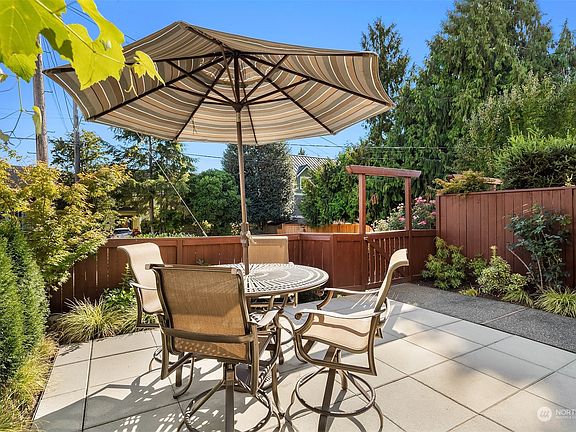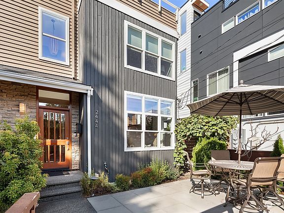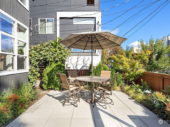 Spacious Northwest Contemporary nestled in the heart of Ballard! Located on a quiet cul-de-sac this high-end townhouse offers 2,397 sq ft of living space, soaring ceilings, flooded with natural light. Enter the home to a large, open main living space with hardwood floors and exposed beam ceilings. Chef's kitchen complete with SS appliances and large granite slab breakfast bar with space for seating.Second level has two bedrooms, media room, and a full bathroom. Top level hosts the primary suite complete with 5-piece bathroom, 3 walk-in closets, private deck and AC. Full size laundry room, 2 car-garage, freshly painted, new carpet, abundant storage, fully fenced yard. No HOA dues! Close to Ballard locks, restaurants, shops, parks and more!
