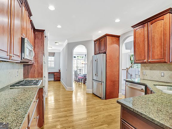 Welcome to this stunning end-unit townhome, brimming with natural light and thoughtful design. The open-concept main level feels more like a single-family home, offering seamless flow throughout. The chef's kitchen features granite countertops, gas cooktop, double ovens, KitchenAid stainless steel refrigerator, and a spacious pantry with a clever office nook. The living room impresses with its stone fireplace, dining space, and easy access to the private deck perfect for relaxing or entertaining. A separate dining area at the front of the home is framed by a beautiful bay window. Upstairs, the expansive primary suite offers a large bedroom with an additional sitting area and fireplace, a spa-inspired bath, and TWO oversized walk-in closets. Another spacious bedroom, full bath, and convenient laundry room complete the upper level. The lower level provides a two-car garage, ample storage, plus a private bedroom and full bath ideal for guests or a home office. All of this in an unbeatable location, just minutes to the vibrant shops and restaurants of Oak Grove, with top-rated schools nearby and easy access to Emory, CDC, and the new CHOA campus.