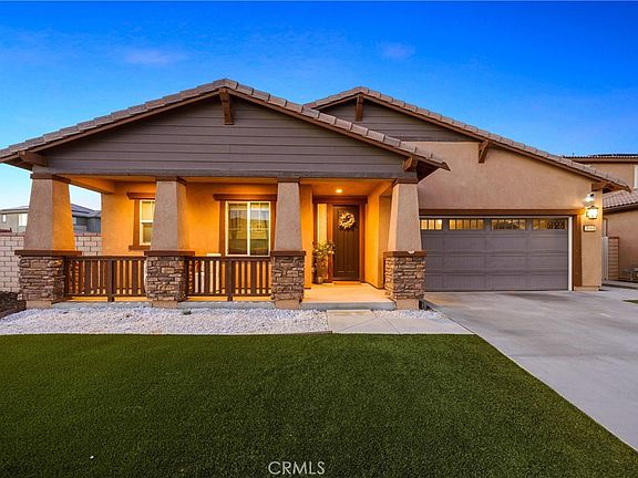 Welcome to 24440 Reserve Ct! Modern comfort meets effortless living! Located in the highly desirable Audie Murphy Ranch community, this beautifully upgraded single-story home offers 4 spacious bedrooms, 3 full bathrooms, and over 2,400 sq ft of open-concept living space. Built in 2020, this home has been thoughtfully designed for both everyday living and stylish entertaining. Step inside to discover luxury vinyl plank flooring, high ceilings, and an abundance of natural light. The chef’s kitchen features granite countertops, a large center island with bar seating, stainless steel appliances, a walk-in pantry, and plenty of cabinet storage. The private primary suite is tucked away from the secondary bedrooms and includes a large walk-in closet, dual sinks, a soaking tub, and a separate glass-enclosed shower. Secondary bedrooms are well-sized, with one offering en-suite access. Additional highlights include: whole house water softener system and spacious laundry room. Outside, enjoy low-maintenance landscaping, artificial turf, and a spacious backyard ready for your personal touches. All of this in a resort-style community offering pools, spas, walking trails, parks, sports courts, and top-rated schools nearby. With easy access to shopping, dining, and the 215/15 freeways, this home checks every box!