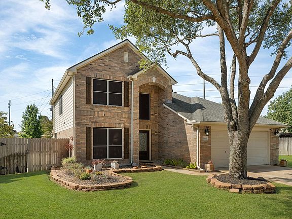 Stunning 4-BR/ 2.5-BA home sits on quiet cul-de-sac, just 4-minute walk to elementary school. Offering 2,248 sq. ft. of stylish, functional living, features rich wood flooring throughout main areas, carpet only in primary suite, custom industrial light fixtures, two built-in floating entertainment ctrs, custom cabinets in owner’s suite that can be used as closets, solar screens, recessed kitchen lighting, & gas fireplace. Kitchen includes (2021) SS appls—all convey. Half bath dazzles w/silver vessel sink, sleek backsplash, & framed mirror. Upstairs offers three spacious guest rooms plus versatile game room. Step outside to your backyard paradise with custom 34' x 17' pool (13,000 gallons) & trees added in 2021, ext covered patio (2024), & lush landscaping where butterflies flitter through the garden as you sip mint tea in the shade. Insulated garage includes built-in cabinets. Includes shed, pool supplies, umbrella, new roof & A/C (2018), and never flooded. Zoned to top-rated Katy ISD!
