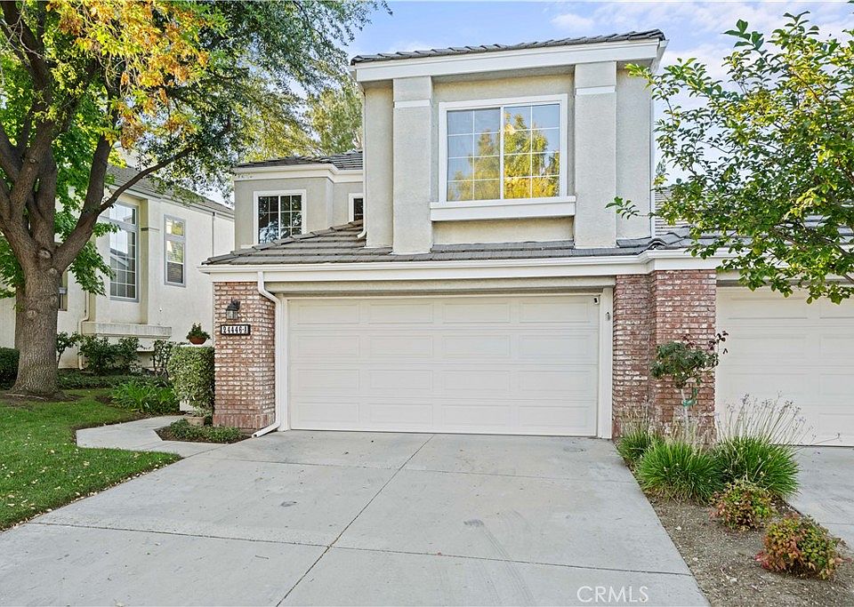 Welcome to luxury living in the prestigious Stratford gated community within the exquisite Valencia Summit. This stunning townhome is a haven of elegance and comfort, boasting upscale features and finishes that truly set it apart. Upon arrival, you are greeted by a double entry door that beckons you into a world of refined living. Step into the foyer, and from there, descend gracefully into the expansive living room. Sunlight pours in, filling the room with warmth and radiance, accentuating the French oak wide plank wood floors that seamlessly flow throughout the lower level. The heart of the home is a culinary enthusiast's dream. The upgraded kitchen showcases gleaming granite countertops, paired with an oversized bar counter, perfect for entertaining guests or enjoying a casual breakfast. LED lighting accents the space, and top-of-the line appliances include a GE Profile double oven, a six burner Viking range, Bosch dishwasher and a Cafe Venting microwave. Just beyond the kitchen is a cozy eating area that provides a delightful backdrop for your daily meals. Venturing upstairs, you'll discover an expansive floor plan offering two spacious bedrooms, each radiating a sense of serenity. There is also an option to transform the loft which graciously overlooks the living room into the third bedroom. The primary bedroom is a true retreat, featuring a private balcony where you can unwind and relish-in the idyllic California weather. The updated primary bathroom exudes luxury with its separate tub and shower, offering a spa-like experience right at home. The recent addition of Shaw carpet upstairs ensures a plush and comfortable atmosphere throughout. Elegance is further reflected in the details, with Plantation shutters adorning the windows and six-inch baseboards encasing the floors. The entire home has been freshly painted, bathrooms received tasteful updates, LED lighting installed in the kitchen and the loft which keeps the ambiance modern, while mirrored wardrobe doors in the bedrooms add a touch of sophistication. Outside, a stamped concrete patio and stone planter provide the perfect back drop creating a charming space to savor the Valencia evening. HOA amenities include several private pools, spas, tennis courts, clubhouses, BBQ areas, playground, and common grounds maintenance. The paseo accesses the parks, and the Santa Clarita trail network so you can walk or bike for miles. Nearby shopping, restaurants, schools, and just minutes from the freeway.