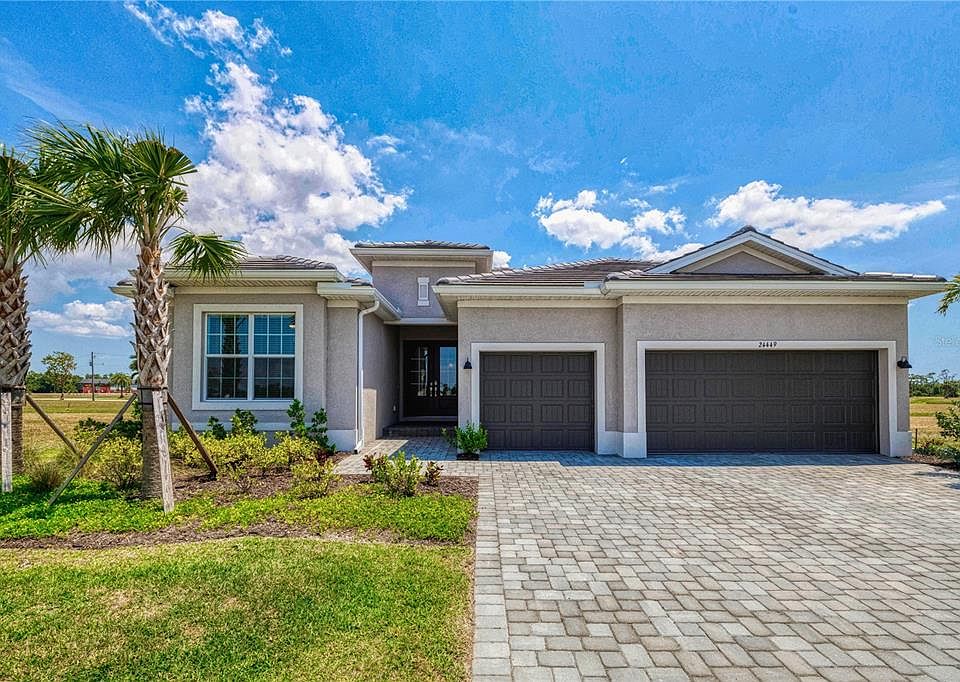 BEAUTIFUL 2023 3 Bedroom, 3 Bathroom, 3 Car Garage home with a Den is located in Burnt Store Lakes. MOTIVATED SELLER offering $10,000 FLEX CASH to buyers at closing to use towards buying down the interest rate or to cover closing costs! CLICK ON VIRTUAL TOUR LINK 1 FOR THE VIDEO AND VIRTUAL LINK 2 FOR THE 3D TOUR. 2023 TILE ROOF - PAVER DRIVEWAY - HURRICANE PROTECTION - LANDSCAPING - IRRIGATION - RAIN GUTERS. This beautiful home features tile flooring throughout, tray ceilings, recessed lighting and MUCH MORE! An open living and dining room make this home perfect for entertaining friends and family. The kitchen offers ALL Stainless-steel appliances, Quartz countertops, closet pantry, island with breakfast bar, and plenty of cabinets for storage. The spacious master bedroom has a glass slider to the lanai, HIS & HERS walk-in closets and a private bathroom with HIS & HERS split vanities, tiled walk-in shower, and private toilet. The two guest rooms are a fantastic size with built in closets, one with an en-suite bathroom and one with a guest bathroom nearby. Sip your morning coffee or unwind with your favorite evening beverage on the screened in lanai where you can enjoy the beautiful Florida weather. Burnt Store Lakes is a deed restricted community featuring city water, sewer, a playground, community park, bike path, and recreation area. Enjoy the convenience to Burnt Store Marina, the largest deep water marina in SW FL featuring wet slips, dry dock storage, boat ramp, and Burnt Store Marina Golf and Activity Club. This community offers convenience to US41 and I-75 for easy access to local shopping, dining, entertainment & award-wining beaches!
