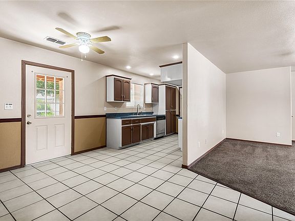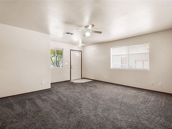 Beautifully updated 3 bedroom, 2 bath home in Kingman AZ, renovated in 2022. New carpets in bedrooms & living areas; tile flooring in kitchen, dining, and bath. 2 car garage. NEW chain link fence in front & back yard. AC & heat pump in one unit on roof, very well maintained. All rooms equipped with ceiling fans. Shingle roof very well maintained. 8 X 16 shed.