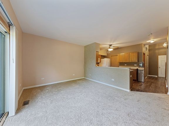 Open floor plan boasts family room with fresh paint and new carpet. Loads of cabinets in kitchen with wood laminate flooring and breakfast bar open to family room. 2 story foyer has staircase with oak railings. Vaulted master suite with dual closets. Second floor laundry with full size washer/dryer. All appliances stay. Newer AC, refrigerator, microwave and garage door opener. Attached 1 car garage. Large deck backs with big backyard and views of open area. Great location, convenient to everything including dining, shopping, transportation and minutes to I-55. Quick close available!
