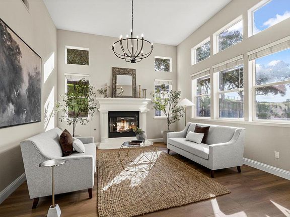 Beautifully updated home on desirable and spacious Olea Court cul de sac in Bridlewood at Country Estates. This over 1 1/4 acre lot backs to Day Valley and offers incredible privacy and stunning pastoral views. Deer and grazing cows can be seen from the LR, DR, FR and primary suite and the entire rear of the lot. Enjoy a forest of oak and redwood trees and ample extra on lot parking. A pool and spa with soothing waterfalls also views Day Valley. The attractive floor plan has a bedroom and ensuite bath downstairs and a flex space upstairs for an office, theater room or game room. New great looking durable LVP flooring flows through all downstairs living spaces and there are newer LED lighting fixtures throughout. The kitchen is very large and updated with natural stone quartzite counters and two islands for all of your cooking or baking. There is bar seating, casual dining space, a pantry, a Bosch gas cooktop & Kitchen Aid double ovens. The kitchen is open to the FR with fireplace & forms the heart of the home. A formal LR with fireplace is adjacent to a formal DR. The primary suite is your retreat; double vanities, jetted tub & double door shower with large walk in closet. One 2 car garage, wired for 240V, 60 amp electric vehicle charging & a separate single car garage