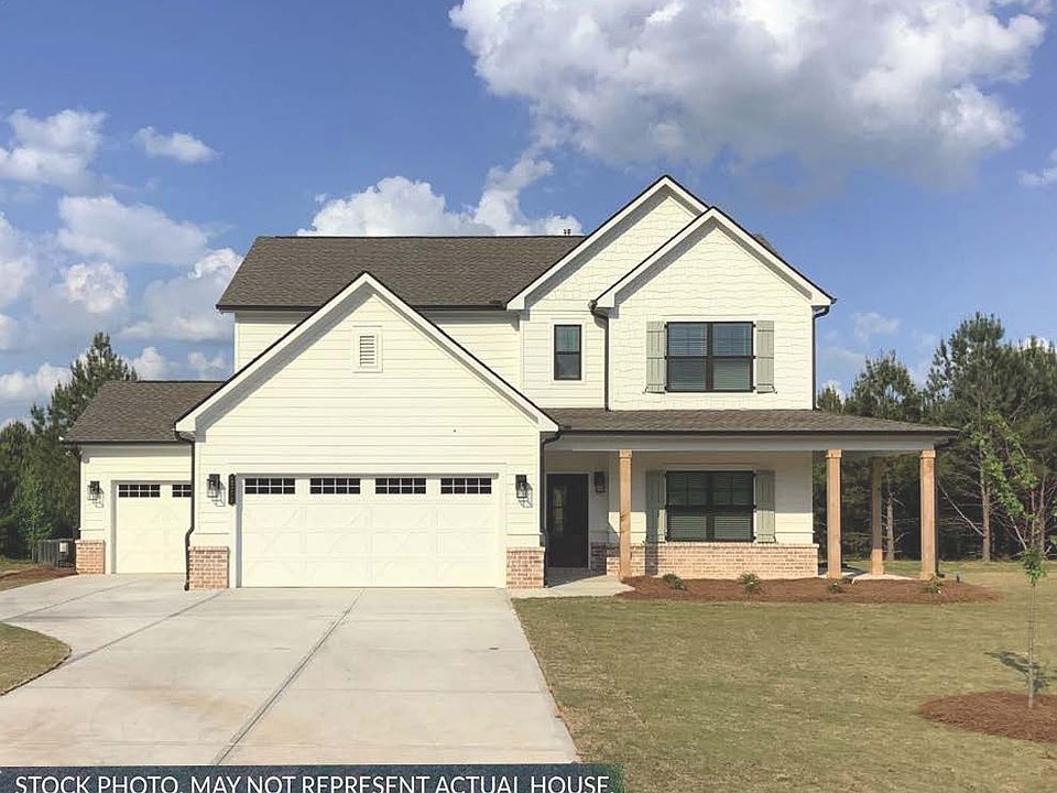 The Hunter - Beautiful 4 bedroom / 3 bath two story home with a welcoming wrap around porch. Bright entry leads to the dining and open concept living area. Chef's kitchen with gourmet serving bar opens to the large family room with brick fireplace and cedar mantle. The full bedroom and bath on the main level are perfect for guests. Upstairs, the Owner's retreat features a tray ceiling, double vanity bath, free-standing tub and shower plus a lavish walk-in closet. The upper level has 3 bedrooms with generous closets. Full daylights basement and deck. Enjoy this large lot from your covered porch. Plenty of parking - 3 car garage.