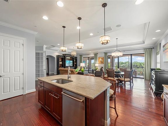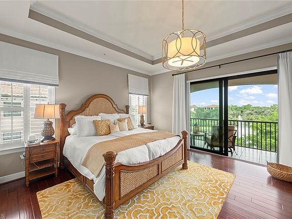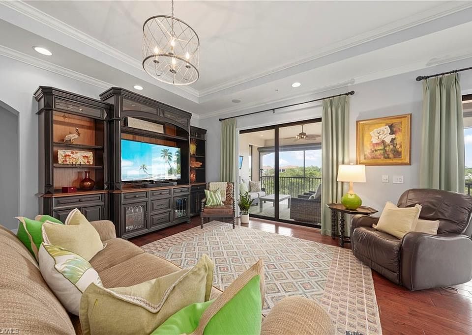 Refined luxury at Terzetto in The Colony at Pelican Landing. Experience elevated living in this rare three-bedroom-plus-den, 2.5-bath residence at Terzetto in The Colony at Pelican Landing, where privacy, sophistication and space blend effortlessly. Encompassing 2,656 square feet of thoughtfully designed interiors, this home lives like a single-family residence, offering a serene retreat just moments from The Bay Club, with added exclusivity of one residence per floor. Arrive in style through your private elevator, opening to a beautifully appointed open-concept floor plan where living, dining and kitchen areas flow seamlessly, ideal for relaxed living and elegant entertaining. A custom wet bar with wine refrigerator elevates every gathering, while luxury upgrades abound such as crown molding, enhanced lighting and electrical features, custom office built-ins and a designer primary closet system. The spacious primary suite and split guest accommodations ensure ultimate comfort and privacy for residents and guests alike. Go onto the expansive main lanai to enjoy tranquil lake views and gentle breezes, whether for morning coffee or sunset cocktails. Designed for peace of mind, the residence features hurricane-rated storm protection, impact-resistant windows and doors, and a private two-car garage finished with epoxy flooring and ample storage space. Residents enjoy access to Terzetto’s private pool and whirlpool spa. This exquisite residence offers more than a home, it embodies a luxurious, secure and distinctly Southwest Florida way of life. Residents of The Colony enjoy a lifestyle that includes access to a private beach island, canoeing, kayaking, pickleball, bocce and tennis, all included in the monthly fees without additional membership requirements. Optional memberships are also available at The Colony and Pelican’s Nest golf clubs. For dining and social experiences, the Colony Bay Club provides exclusive resident-only access with spectacular views over Estero Bay. Fine restaurants, boutique shopping and entertainment are just minutes away, and Southwest Florida International Airport is a convenient 20-minute drive.