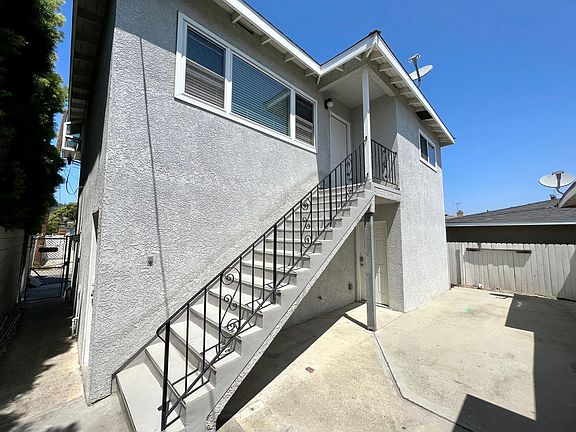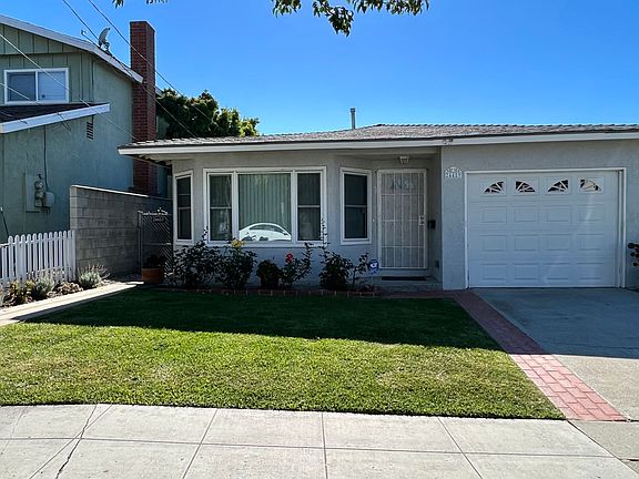 Two on a lot. Rear Unit. Spacious and Bright Upstairs 2 Bedroom 1 Bath Rear Unit in Walteria area. Updated with new laminated flooring, LED recess lighting and ceiling fans, Lots of cabinets, and closet space. The kitchen has tile countertops with a stove, dishwasher, and refrigerator. Laundry hook-ups and a washer and dryer machine are located in the garage. 1 car garage with automatic openers plus one additional parking space.