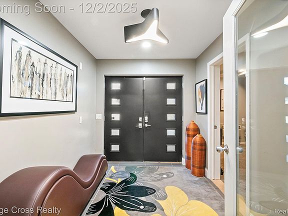 Enjoy multiple living spaces with three fireplaces—two wood-burning and one electric—plus a dedicated home office and a private home gym. Large windows throughout bring in an abundance of natural light. The patio includes a new powered Marygrove awning with built-in lighting, making it perfect for relaxing or entertaining outdoors.