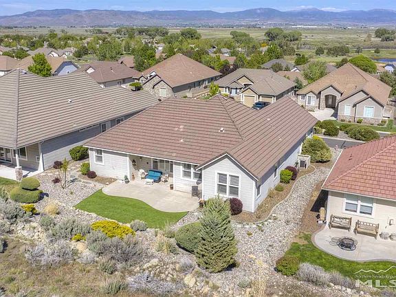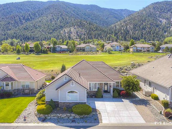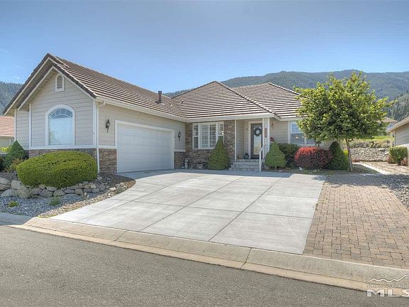 This beautiful Genoa Lakes home offers sweeping mountain and golf course views. The split floor plan provides 3 bedrooms, 2.5 baths, a formal dining area and updated kitchen. Quartz counter tops, a new tile back splash, dishwasher and cook top are just a few of the updates this home features. Relax on the covered back patio and watch a round of golf play out or enjoy a night in next to the stacked stone gas fireplace. The master en-suite comes complete with his & her sinks, a bathtub and separate shower.