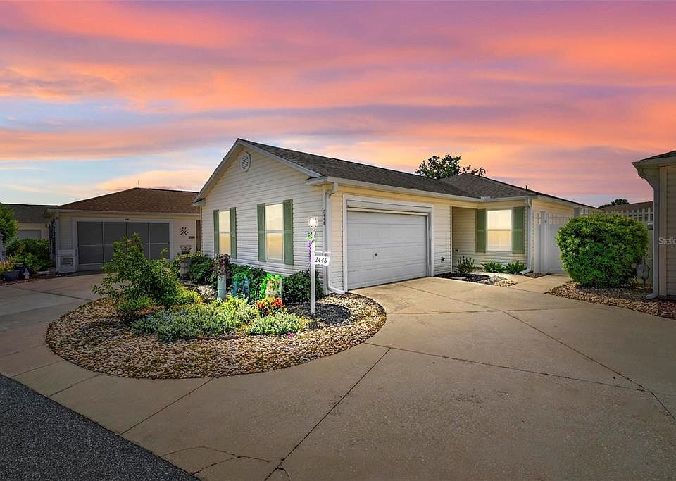 AFFORDABLE, WORRY-FREE FLORIDA LIVING! With a low-maintenance yard and a low bond balance of just $2,500, you’ll enjoy comfort and convenience from day one. Major systems have already been updated for peace of mind: roof (2020), hot water heater (2020), and HVAC condenser fan motor (2021). Located in the highly desirable Cherry Hill Villas in the Village of Belvedere, this Courtyard Villa is the only home style in The Villages that offers a fully fenced backyard—providing privacy and a safe haven for pets. Whether you’re seeking a full-time home, winter retreat, or investment, this villa is VALUE PRICED and move-in ready. Inside, you’ll find NO carpet, stunning quartz countertops with upgraded faucets (2021), refinished kitchen cabinets (2022), stainless steel appliances (2021), and an epoxied garage floor with fresh interior paint (2021). The glass-enclosed lanai under A/C with floor-to-ceiling sliding windows (2022) creates the perfect year-round retreat—ideal for morning coffee or relaxing after golf. Additional upgrades include a motorized garage screen (2022) and front entry roll-away screen (2021). And the LOCATION can’t be beat—just 5 minutes from the brand-new Costco, Hobby Lobby, banks, restaurants, and shopping. Plus, you’re only 9 minutes from Lake Sumter Landing Town Square and 14 minutes from Spanish Springs Town Square. This villa is vacant, easy to show, and ready for you—schedule your private tour today and discover why this home is such a gem! Seller may consider a lease option if the terms are strong.