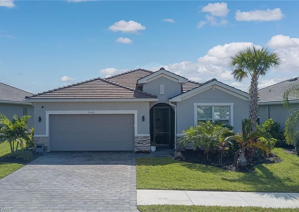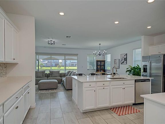 Like-New Marsala Model with Water Views in Orange Blossom Ranch! Welcome to 2446 Orchard Street in Naples, FL — a pristine Marsala model offering 3 spacious bedrooms, a versatile den, 3 full baths, and over 2,200 sq ft of thoughtfully designed living space — all set on a premium lot with tranquil water views. From the moment you step inside, this home impresses with like-new condition, sleek tile flooring throughout (no carpet!), and a flowing, open layout perfect for both everyday living and entertaining. The heart of the home boasts a chef’s kitchen with extensive cabinet space, stainless steel appliances, granite countertops, and a large island ideal for gatherings and prep work alike. Whether you're cooking for two or hosting a full house, this space was designed to keep up. The split-bedroom layout provides privacy, while the den offers the perfect flex space — home office, guest room, or playroom. The primary suite features peaceful water views, a spacious walk-in closet, and an ensuite bath with dual sinks and walk-in shower. Step out to your covered lanai and soak in the serene lake views — a perfect spot for morning coffee or evening wine. The yard offers space to add a pool if desired, or simply enjoy the quiet, low-maintenance outdoor setting as-is. Located in the gated, resort-style Orange Blossom Ranch, this family-friendly community is loaded with amenities: Two resort-style pools, lap pool, hot tubs, tennis, basketball, volleyball & pickleball courts, a fitness center, clubhouse, playgrounds & more! Just outside the gates, enjoy the brand new Publix shopping center — golf cart accessible for the ultimate convenience! You’re also minutes from top-rated schools and Big Corkscrew Island Regional Park — Collier County’s largest and newest park, featuring sports fields, splash pads, walking trails, and more.