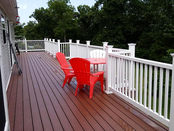 WALK TO THE LAKE BEHIND this 5+ bedroom modular home. Beautiful home with new flooring and brand new composite deck. 3 bedrooms upstairs, two baths and a spacious kitchen and living room. Finished walkout basement has family room, full bath, 2 bedrooms and another large room used as storage. Basement also has an additional garage and a wood furnace ducted through house. 3 car detached garage with a loft and a 25x14 carport for the pontoon or travel trailer. Lots of landscaping and so easy to walk to water. Take a look at the pictures to see the quality.