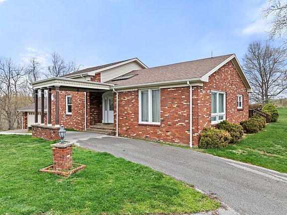 This well-built brick home sits on just under 1.5 acres of usable land with a flat front and back yard, large private deck, and excellent curb appeal. Tucked back off the road, it offers a secluded feel with a big circle driveway and oversized 2-car garage for plenty of parking. Inside, you'll find convenient first-floor living with 2 bedrooms, a full bath, designated laundry room, a spacious open concept kitchen/dining, formal living room, half bath, and a warm, inviting family room equipped with a bar area and a woodburning fireplace. Upstairs, there's a private third bedroom with its own full bath. A rare find that combines comfort, privacy, and timeless charm!
