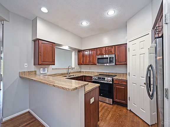 Bright and spacious townhome with over 1900 sq ft in a highly sought after community! Enjoy updated open concept living with hardwood floors and abundant natural light. The finished walkout lower level features a fireplace, half bath and new flooring offering a versatile living space ideal for a large family room/home office and is a fabulous area for entertaining and gatherings. Tucked in a quiet section of the neighborhood, residents enjoy resort style amenities including a pool, clubhouse, pickleball and tennis courts, and a play area. This is a rarely available floor plan with recent updates including HVAC 2024, oven/range 2024, water heater 2020, flooring, new decking. Don't miss this opportunity!