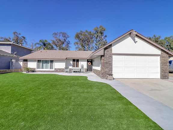 Honey Stop The Car! Beautiful Home with Great Curb Appeal. Clean Front yard with Astro Turf and rock stone on the house. Nice size Kitchen with Brand New Granite counters. Open Floor plan that flows nicely. Dinning area off of the kitchen. Large living room. Remodeled hall Bathroom. Master Bedroom with Vaulted ceilings and remodeled Vanity. Nice backyard with covered patio with Astro Turf. Close to Schools and Shopping.