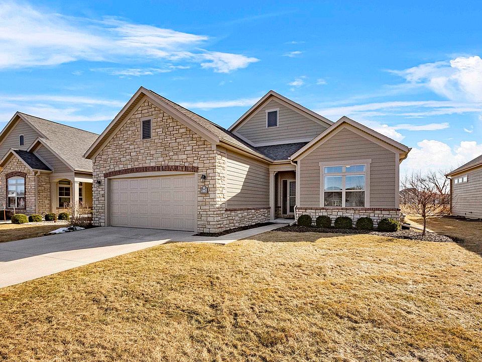 Welcome to this charming and beautiful 1-story home located within a small HOA with only 13 units! Enjoy the convenience of having your lawn care and snow removal taken care of, freeing up your time for what truly matters! Step inside to discover an open and bright, modern floor plan featuring hardwood floors, loads of natural light, transom windows, large primary suite, and the perfect cooks delight kitchen with a large island and quartz counters with upgraded cabinets. Fantastic primary bath with walk-in tiled shower and a huge closet. Enjoy peaceful nights on your back patio with wildlife galore! This home feels hardly lived in! More large closets than you'll find almost anywhere! Finish the LL for more space if desired! There's an egress window and stubbed for a future bath.