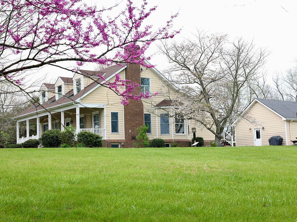 This charming 5-bedroom, 4.5-bathroom farmhouse sits on 37 picturesque acres, perfectly blending classic charm with modern updates, including new carpeting and basement flooring. Inside, enjoy spacious living areas with a cozy wood-burning fireplace and timeless wood floors that flow throughout. The master suite offers a luxurious bath with a soaking tub and a walk-in closet, while two skylights brighten the upstairs, filling it with natural light. The kitchen is a chef's dream, featuring custom cherry cabinets, granite countertops, and ample storage.