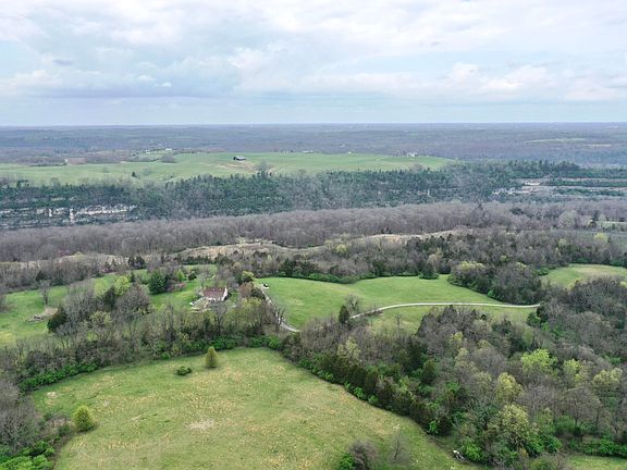 Outdoor living is equally inviting, with a sunroom perfect for year-round enjoyment, a stamped concrete patio for dining or relaxation, and a fire pit for gathering under the stars. The property also includes a two-car garage with extra storage, a garage extension for farm equipment, and a fenced pasture with a run-in shed, ideal for livestock. Explore wooded trails that offer stunning views of the Kentucky River Palisades.
