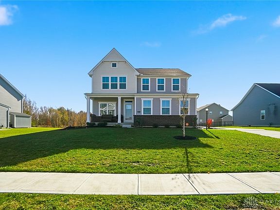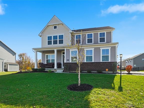 Assumable Loan Option with a 3.25% rate! Located in Beavercreek Township's Nathanial's Grove community, this beautiful 2-Story, true 5-Bedroom/3.5 Bath home has a Finished Basement with a Full Bath and an Egress Window! Just three years new, this home offers nearly 3,200SF of Finished Living Space and nearly 400SF of coveted Unfinished Storage Space! Such great Curb Appeal here with the well maintained Landscaping, extended Covered Front Porch and desirable 2-Car Side Entry Garage! Beautiful LVP and Carpet throughout the 1st Floor, which features 9' Ceilings. The Entry of the home leads you from the Office Area to the Open Floor Plan of the Great Room (with Gas Fireplace), Kitchen (with amazing 10' Island w/Breakfast Bar, Granite Countertops, plenty of Cabinet Space, and Stainless Steel Appliances), and the roomy Breakfast Area (with lots of Natural Light). The Double Door Pantry is located in the Mudroom Area just off the Kitchen, along with the 1st Floor Half Bath. Upstairs, the Primary Bedroom is quite spacious with an amazing Walk-In Closet, and ensuite Bathroom with Double Sinks, generous Walk-In Shower and private Toilet. Three additional Bedrooms and the very convenient Laundry Room, just off the Primary Bedroom, complete the 2nd Floor. In the Basement, there is a Rec Room, the 5th Bedroom with Egress Window and a Full Bath, along with a substantial amount of unfinished Storage Space for all your Storage needs. Out back, there is a wonderful Covered Porch (with LED Post Lights) to enjoy, along with an extended Concrete Patio, a Concrete Pad (for a Storage Shed to be placed) and a Tree-Lined Backyard view! HOA includes a Community Pool, Play Area, Basketball Court, and Walking Trails. Sellers added Ceiling Fans, updated Door Hardware throughout, added the extended Concrete Patio and Concrete Pad in the Back, and the LED Post Lights to the Back Covered Porch. Close to so much - WPAFB/WSU/675/35/70 & Retail/DiningEntertainment options!