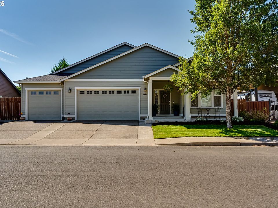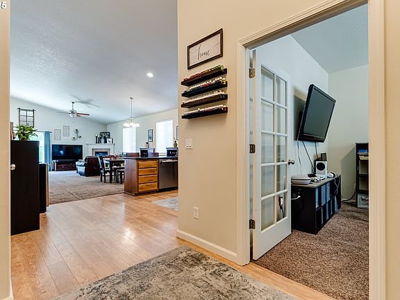 Welcome to this inviting 3-bedroom, 2-bathroom home perfectly situated in a wonderful Junction City neighborhood. Featuring an open great room concept with vaulted ceilings, this home offers a bright and spacious layout ideal for both everyday living and entertaining. The primary suite has vaulted ceilings, a walk-in closet, and a private bath for a comfortable retreat. Two additional bedrooms provide space for family, guests and additionally there is a home office with French doors. Enjoy outdoor living with a covered patio and a welcoming front porch that is perfect for relaxing.The 3 car garage is an added bonus for so much storage. With its thoughtful design and warm atmosphere, this home is ready to welcome its next owners.