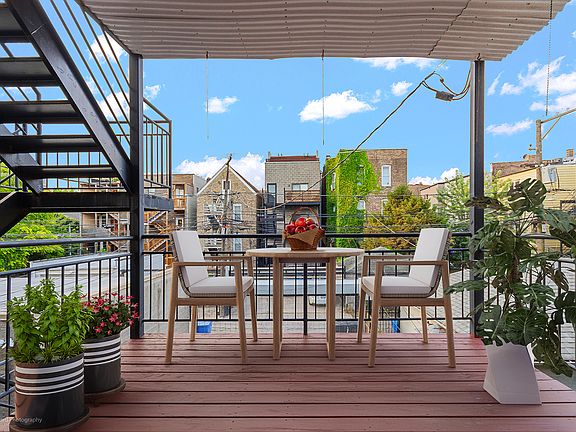 Discover your sanctuary in this beautifully renovated 2-bedroom, 2-bathroom condo located on a serene, tree-lined street in Ukrainian Village. In this cherished West Town/Ukrainian Village neighborhood, you will be just moments away from a variety of dining options, entertainment venues, peaceful parks, and local shops, all contributing to the vibrant community life you deserve. This home is filled with natural light thanks to oversized windows. It features warm dark flooring throughout, a gourmet kitchen with inviting granite countertops and stainless steel appliances, and maple cabinets that make meal preparation a joy. The thoughtful design includes stylish lighting and a comforting wood-burning fireplace, perfect for cozy evenings. The master suite serves as a personal retreat, complete with an oversized jacuzzi tub, a separate shower, and a double vanity. Enjoy your outdoor space on the large back deck, which is ready for moments of relaxation and wired for surround sound. Additionally, you'll have the convenience of two parking spaces included.