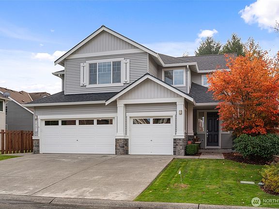 Immaculately cared-for Maple Woods home tucked in a friendly cul-de-sac, where natural light fills the open spaces and soaring ceilings with wide plank hardwoods welcome you in. The main level offers a flexible office or guest room, spacious living and dining areas, and a cozy family room with a gas fireplace. The kitchen features a sunny breakfast nook and granite tile counters. Upstairs, the primary suite boasts a luxurious 5-piece bath, plus a bonus room and two comfortable bedrooms. Enjoy coffee on the blue flagstone patio overlooking a private, fenced backyard with peaceful greenbelt views. Recent updates include a new roof, gutters, furnace, A/C, water heater, and cedar fencing. Award-winning Tahoma Schools!