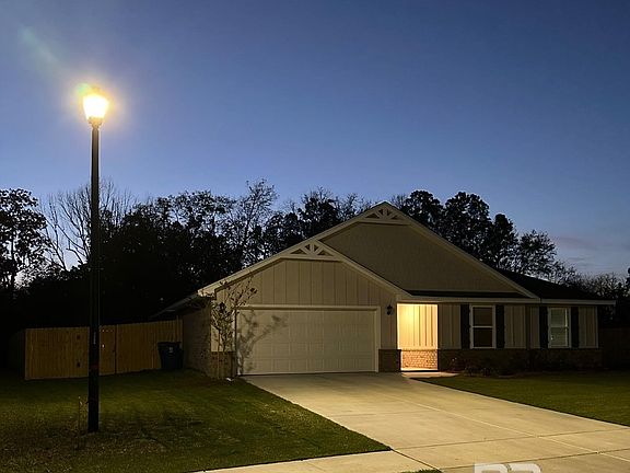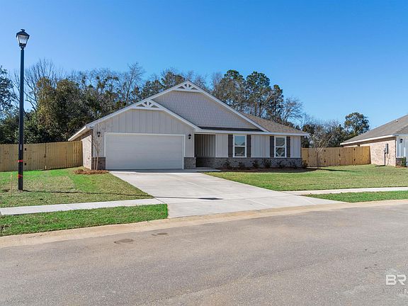 UPGRADES GALORE! Welcome to 24472 Ringneck Loop, the ONLY premium lot available in the peaceful Pheasant Run community of Elberta, Alabama, showing off an impressive .34 acres.This stunning new construction home showcases luxury upgrades throughout, including a fresh kitchen backsplash, under-cabinet lighting, a new hall tree, an elegant dining room light fixture, framed windows, and a fully fenced backyard - PLUS SO MUCH MORE!Set on a spacious pie-shaped lot, this residence offers ample privacy and plenty of room for outdoor enjoyment - perfect for a pool, kids, pets, and barbecues. Enjoy evenings outside enhanced by solar lights that create a warm ambience, while a neighborhood light illuminates the driveway for added safety. As you approach this east-facing gem, you're greeted by beautiful trees and breathtaking sunset views. Inside, the bright , open living area flows into a gourmet kitchen, featuring generous counter space, a central island, elegant shaker-style cabinets, granite countertops, and stainless-steel appliances. The fresh backsplash and stylish light add a touch of sophistication. The generously sized primary bedroom serves as your personal retreat, complete with a walk-in closet and an ensuite bathroom featuring a double vanity, soaking tub, and shower. Three additional well-proportioned bedrooms make this home ideal for family or guests, sharing a conveniently located bathroom. The expansive, fully fenced backyard, with a covered patio, is perfect for outdoor dining and relaxation. The beautifully landscaped front yard enhances curb appeal and invites you in. This home is fully equipped with Smart Home Connect Technology, a video doorbell, and keyless entry. With a one-year builder warranty and a 10-year structural warranty, your investment is WELL PROTECTED! Built to Gold Fortified Home certification, it may save you on insurance!Experience the charm of 24472 Ringneck Loop, where comfort, style, and peaceful living come together. Buyer to verify