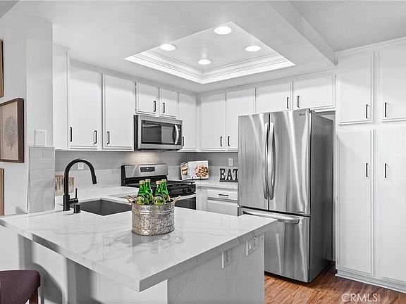 Welcome to Easy Living in the Heart of Laguna Niguel! Step into style and comfort with this beautifully upgraded ground-level 1-bedroom, 1-bathroom condo, located in the highly desirable gated community of Village Niguel Terrace II—no stairs, no hassle, just effortless coastal living. From the moment you arrive, you’ll notice the private front patio, perfect for sipping your morning coffee or unwinding at sunset. Just steps away, enjoy the convenience of your own detached garage. Inside, nearly every surface has been touched with thoughtful upgrades. Fresh paint throughout, modern ceiling fans, a digital thermostat, and sleek recessed lighting set the tone. The kitchen is a showstopper with brand new quartz countertops, subway tile backsplash, matte black fixtures, and a full suite of stainless steel appliances, including a Bosch dishwasher and LG refrigerator. The bathroom feels like a spa retreat—featuring a brand-new walk-in shower with chrome finishes, quartz vanity, modern fixtures, and a fresh mirror and medicine cabinet. Additional highlights include: New Laminate flooring and baseboards, Smart digital entry lock, All-new door handles and hardware in a matte black finish, Freshly painted exterior and front door, New GFCI outlets in kitchen and bathroom for safety and peace of mind. Beyond your front door, the community offers resort-style amenities: a sparkling pool, relaxing spa, tennis courts, dog park, greenbelt, and a private park. Enjoy quick access to hiking and biking trails, and you're just minutes to Target, Costco, Walmart, top-rated schools, and the best restaurants in town. Whether you're downsizing, investing, or buying your first home, this gem delivers modern living with a beach-town vibe. Don’t miss your chance to own this move-in-ready condo in one of Orange County’s most beloved communities!