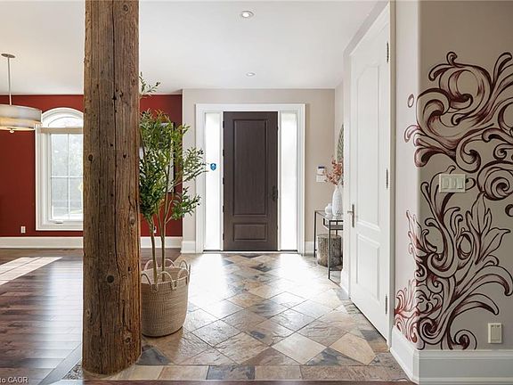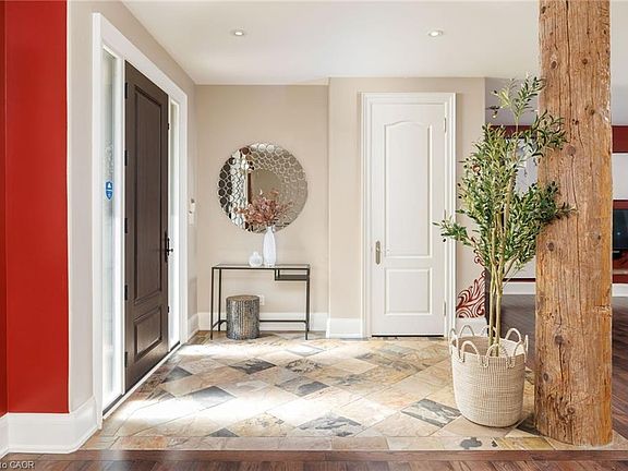 A remarkable lifestyle awaits in Oakville’s highly sought-after West Oakville community, where every convenience is just steps away. This exquisite custom raised bungaloft, redesigned in 2016 by Keeren Designs, backs directly onto the scenic Donovan Bailey Trail & is only a 3-minute walk to the Queen Elizabeth Park Community & Cultural Centre. Enjoy nearby Bronte Harbour, Lake Ontario, waterfront parks, & Bronte Village’s shops & restaurants, all just minutes away, with quick commuter access to Bronte GO Station & the QEW/403. Showcasing undeniable curb appeal, this luxury home features a stucco façade with accent shutters, stone steps leading to a covered entry with columns & iron railings, interlocking stone walkways, professional landscaping with mature trees, a 9-zone irrigation system, & exterior cameras. The private backyard retreat offers upper & lower stone patios, gardens with armour stone accents, evergreens, & direct trail access. Inside, the residence boasts 2+3 bedrooms, 2.5 bathrooms, & a versatile loft perfect as a bedroom, home office, or studio. The 2016 transformation added a gourmet kitchen, wide-plank hardwood, designer tiles, custom built-ins, deep trim, built-in speakers, & expandable Control4 smart home automation. Designed for comfort & entertaining, the open-concept main floor offers 9’ ceilings, family room with gas fireplace, spacious dining room, & chef’s kitchen with custom cabinetry, quartz counters, oversized island with seating for 6, high-end appliances, & a breakfast area with walkout to the backyard. The primary suite showcases 2 walk-in closets & a spa-inspired 4-piece ensuite with soaker tub & oversized glass shower. The finished lower level includes a large recreation room, 3 bright bedrooms, 3-piece bath with heated floor & glass shower, oversized laundry, & abundant storage. Upgrades include furnace, HRV, roof shingles (2016), & recently, some main floor windows updated, & addition of a custom 8’ solid wood front entry door.